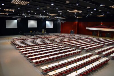 Internationale Stars aus Comedy, Literatur, Musik und Politik haben hier schon die Bühne gerockt. Der Große Saal im RuhrCongress Bochum ist das Herzstück des Hauses. Mit einer Grundfläche von 3.280 Quadratmetern, lässt er sich fast allen Bedürfnissen unserer Kunden anpassen und bietet Platz für die unterschiedlichsten Veranstaltungen. Ob ebenerdig parlamentarisch, bankettbestuhlt, in Reihe mit oder ohne ausfahrbare Tribüne oder unbestuhlt mit einer Kapazität von bis zu 4.960 Personen – hier lassen sich Kongresse, Messen, Shows und größere Konzerte perfekt ausrichten.