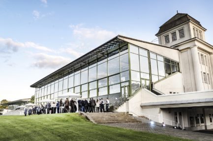 Die auf unterschiedlichen Ebenen angeordnete, oberhalb der „Alten Wetthalle“ liegende lichtdurchflutete „Terrassentribüne“, bietet mit bis zu 360 Personen Bankettbestuhlung einen unvergesslichen Blick auf das Geläuf und den innenliegenden Golfplatz. Sie ist ein absoluter Geheimtipp in Dortmund für exklusive Abendevents und eignet sich idealerweise auch als Raum für die Mittagspause und das gemeinsame Essen bei Tagungen und Kongressen.